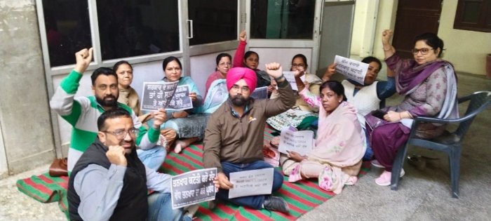ਕੋਟਕਪੂਰਾ, 5 ਦਸੰਬਰ (ਗੁਰਦੀਪ ਸਿੰਘ ਢਿੱਲੋਂ) :- ਨਿਆਂ ਲਈ ਕਲਮ ਵੀ ਚੁੱਪ ਹੋ ਸਕਦੀ ਹੈ ਦਾ ਨਾਅਰਾ ਦੇ ਕੇ ਸਿੱਖਿਆ ਵਿਭਾਗ ਦੇ ਦਫਤਰੀ ਕਾਮਿਆਂ ਨੇ ਆਪਣੇ ਨਾਲ ਹੋ ਰਹੇ ਧੱਕੇ ਵਿਰੁੱਧ ਵਿਭਾਗ ਦਾ ਮੁਕੰਮਲ ਕੰਮ ਠੱਪ ਕਰ ਦਿੱਤਾ। ਮੁਲਾਜਮ ਅੱਜ ਤੋਂ ਅਣਮਿੱਥੇ ਸਮੇਂ ਲਈ ਹੜਤਾਲ ’ਤੇ ਚਲੇ ਗਏ ਹਨ ਮੁਲਾਜਮ ਆਗੂਆਂ ਦਾ ਕਹਿਣਾ ਹੈ ਕਿ ਸਿੱਖਿਆ ਵਿਭਾਗ ਅਤੇ ਵਿੱਤ ਵਿਭਾਗ ਦੀਆ ਕੋਝੀਆ ਚਾਲਾਂ ਵਿਰੁੱਧ ਅਤੇ ਭਗਵੰਤ ਮਾਨ ਸਰਕਾਰ ਵੱਲੋਂ ਕੱਚੇ ਮੁਲਾਜ਼ਮਾਂ ਦੀਆ ਮੰਗਾਂ ਮੰਨਣ ਦੇ ਬਾਵਜੂਦ ਲਾਗੂ ਨਾ ਹੋਣ ’ਤੇ ਮੁਲਾਜ਼ਮਾਂ ਦਾ ਸਰਕਾਰ ਖਿਲਾਫ ਰੋਸ ਸਿਖਰ ’ਤੇ ਪੁੱਜ ਗਿਆ ਹੈ। ਸਿੱਖਿਆ ਵਿਭਾਗ ਅਤੇ ਵਿੱਤ ਵਿਭਾਗ ਵੱਲੋਂ ਦਫਤਰੀ ਕਾਮਿਆ ਨੂੰ ਰੈਗੂਲਰ ਤਨਖਾਹ ਅਨਾਮਲੀ ਅਤੇ ਮਿਡ ਡੇ ਮੀਲ ਮੁਲਾਜ਼ਮਾਂ ਦੀ ਤਨਖਾਹ ਵਾਧੇ ਤੇ ਪਿਛਲੇ ਇਕ ਸਾਲ ਤੋਂ ਟਾਲ ਮਟੋਲ ਦੀ ਨੀਤੀ ਅਪਣਾਈ ਜਾ ਰਹੀ ਹੈ ਪਰ ਉਥੇ ਹੀ ਆਪਣੇ ਕੁਝ ਚਹੇਤਿਆ ਨੂੰ ਗੱਫੇ ਦੇਣ ਦੀ ਸੂਚਨਾ ਮਿਲਦੇ ਹੀ ਦਫਤਰੀ ਮੁਲਾਜ਼ਮਾਂ ਦਾ ਰੋਹ ਵੱਧ ਗਿਆ ਅੱਜ ਮੁਲਾਜਮਾਂ ਵੱਲੋਂ ਜਿਲਾ ਦਫਤਰ ਵਿਖੇ ਇਕੱਠ ਕਰਕੇ ਸਰਕਾਰ ਅਤੇ ਵਿਭਾਗ ਵਿਰੁੱਧ ਜੰਮ ਕੇ ਨਾਅਰੇਬਾਜੀ ਕਰਦਿਆਂ ਕਿਹਾ ਕਿ ਮੁੱਖ ਮੰਤਰੀ ਵੱਲੋਂ 21 ਅਪ੍ਰੈਲ 2022 ਅਤੇ ਕੈਬਿਨਟ ਸਬ ਕਮੇਟੀ ਵੱਲੋਂ 14 ਮਾਰਚ 2024 ਨੂੰ ਮੰਗਾਂ ਮੰਨਣ ਦੇ ਬਾਵਜੂਦ ਵੀ ਵਿਭਾਗ ਵੱਲੋਂ ਮੰਗਾਂ ਨੂੰ ਅਮਲੀ ਜਾਮ ਨਹੀ ਪਹਿਨਾਇਆ ਗਿਆ।14 ਮਾਰਚ ਦੀ ਮੀਟਿੰਗ ਵਿਚ ਵਿੱਤ ਮੰਤਰੀ ਦੇ ਆਦੇਸ਼ਾਂ ਅਨੁਸਾਰ ਜਥੇਬੰਦੀ ਵੱਲੋਂ ਡੀ.ਜੀ.ਐਸ.ਈ. ਨੂੰ ਐਫੀਡੈਵਿਟ ਵੀ ਦਿੱਤਾ ਸੀ। ਬੀਤੀ 28 ਨਵੰਬਰ ਨੂੰ ਮੁਲਾਜ਼ਮਾਂ ਵਲੋਂ ਰੋਸ ਪ੍ਰਦਰਸ਼ਨ ਕਰਦੇ ਹੋਏ ਪੱਕਾ ਧਰਨਾ ਸ਼ੁਰੂ ਕਰ ਦਿੱਤਾ ਸੀ। ਰੋਸ ਪ੍ਰਦਰਸ਼ਨ ਦੋਰਾਨ ਮੋਹਾਲੀ ਪ੍ਰਸਾਸ਼ਨ ਵਲੋਂ ਮੋਕੇ ’ਤੇ ਕੈਬਿਨਟ ਮੰਤਰੀ ਅਤੇ ਪਾਰਟੀ ਪ੍ਰਧਾਨ ਅਮਨ ਅਰੋੜਾ ਨਾਲ ਪਰਟੀ ਦੇ ਦਫਤਰ ਸੈਕਟਰ 39 ਵਿਖੇ ਮੀਟਿੰਗ ਕਰਵਾਈ ਸੀ ਜਿਸ ਦੋਰਾਨ ਕੈਬਿਨਟ ਮੰਤਰੀ ਵੱਲੋਂ ਸਕੱਤਰ ਸਕੂਲ ਸਿੱਖਿਆ ਕਮਲ ਕਿਸ਼ੋਰ ਯਾਦਵ ਅਤੇ ਸਿੱਖਿਆ ਮੰਤਰੀ ਹਰਜੋਤ ਬੈਂਸ ਨਾਲ ਗੱਲ ਕਰਕੇ ਮੁਲਾਜ਼ਮਾਂ ਦੇ ਮਸਲੇ ਹੱਲ ਕਰਨ ਦੇ ਆਦੇਸ਼ ਦਿੱਤੇ ਸਨ ਅਤੇ ਮੋਕੇ ’ਤੇ 2 ਦਸੰਬਰ ਨੂੰ ਸਕੱਤਰ ਸਕੂਲ ਸਕੱਤਰ ਸਕੂਲ ਸਿੱਖਿਆ ਨਾਲ ਮੀਟਿੰਗ ਦਾ ਸਮਾਂ ਤੈਅ ਕਰਵਾਇਆ ਸੀ ਪਰ ਸਕੱਤਰ ਸਕੂਲ ਸਿੱਖਿਆ ਵੱਲੋਂ ਮੀਟੰਗ ਕਰਨ ਤੋਂ ਮਨਾਂ ਕਰ ਦਿੱਤਾ ਗਿਆ। ਪ੍ਰੈਸ ਬਿਆਨ ਜ਼ਾਰੀ ਕਰਦੇ ਹੋਏ ਸਰਵ ਸਿੱਖਿਆ ਅਭਿਆਨ ਮਿਡ ਡੇ ਮੀਲ ਦਫਤਰੀ ਕਰਮਚਾਰੀ ਯੂਨੀਅਨ ਫਰੀਦਕੋਟ ਦੇ ਆਗੂਆਂ ਦੀਪਕ ਨਾਰੰਗ, ਪੰਕਜ ਕੁਮਾਰ, ਗੁਰਪ੍ਰੀਤ ਸਿੰਘ, ਰਣਬੀਰ ਸਿੰਘ, ਸੰਗੀਤਾ ਛਾਬੜਾ, ਸੋਨੀਆ ਜੱਸਲ, ਸੀਪੂ, ਹੇਮਜੋਤੀ, ਪੁਸ਼ਪਿੰਦਰ ਕੌਰ, ਸੋਨੀਆ ਗੁਪਤਾ, ਮੋਨਿਕਾ, ਅੰਜੂ ਨੇ ਕਿਹਾ ਕਿ ਸੂਬੇ ਦੀ ਅਫਸਰਸ਼ਾਹੀ ਸਰਕਾਰ ਦੇ ਮੰਤਰੀਆ ਨੂੰ ਟਿੱਚ ਜਾਣਦੀ ਹੈ ਅਤੇ 14 ਮਾਰਚ 2024 ਨੂੰ ਕੈਬਨਿਟ