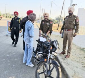Khanna, 6 December  (J.S. Khanna) — Under the leadership of Senior Police Captain Madam Ashvani Gotial, efforts to curb crime in the area have been accompanied by a focus on ensuring smooth traffic management. As part of this initiative, SHO Inspector Hardip Singh of Police Station-2 Khanna, along with his team, set up a traffic checkpoint in front of Shani Dev Mandir. During this operation, they issued challans to individuals violating traffic rules. This effort was also aimed at curbing the activities of troublemakers.