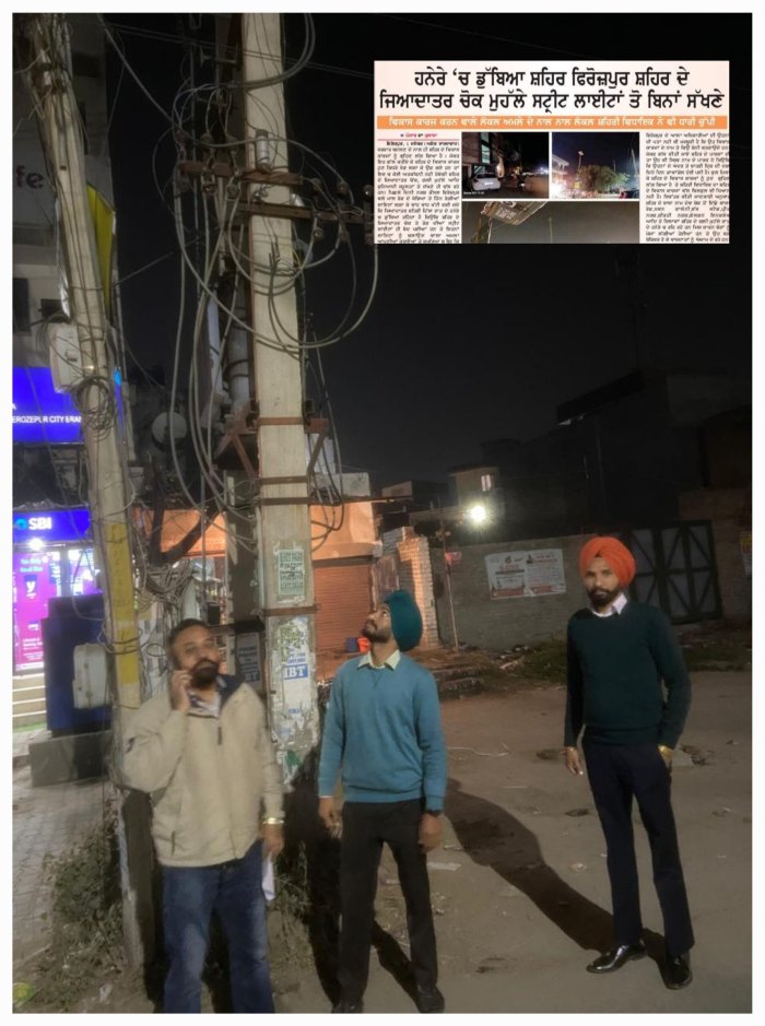 ਬੰਦ ਪਈਆਂ ਸਟ੍ਰੀਟ ਲਾਇਟਾਂ ਨੂੰ ਚਾਲੂ ਕਰਨ ਲਈ ਪੱਬਾਂ ਭਾਰ ਹੋਇਆ ਨਗਰ ਕੌਂਸਲ ਅਮਲਾ ਫਿਰੋਜ਼ਪੁਰ