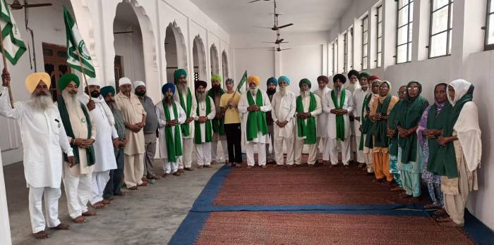 ਮਾਛੀਵਾੜਾ ਸਾਹਿਬ 20 ਅਪ੍ਰੈਲ ਸੁੱਚਾ ਬੰਗੜ)ਭਾਰਤੀ ਕਿਸਾਨ ਯੂਨੀਅਨ ਸਿੱਧੂਪੁਰ ਦੀ ਇੱਕਤਰਤਾ ਪਿੰਡ ਭਮਾਂ ਦੇ ਗੁਰਦੁਆਰਾ ਸਾਹਿਬ ਵਿਖੇ ਕੁਲਦੀਪ ਸਿੰਘ ਸੇਖੋਂ ਸਰਪ੍ਰਸਤ ਬਲਾਕ ਸਮਰਾਲਾ ਅਤੇ ਮਾਛੀਵਾੜਾ ਸਾਹਿਬ ਦੀ ਹਾਜ਼ਰੀ ਚ ਹੋਈ ਅਤੇ 23 ਨਵੰਬਰ ਤੋ ਸੰਯੁਕਤ ਕਿਸਾਨ ਮੋਰਚਾ ਗੈਰ ਰਾਜਨੀਤਿਕ ਦੇ ਕੋਐਡੀਨੇਟਰ ਜਗਜੀਤ ਸਿੰਘ ਡੱਲੇਵਾਲ ਦੇ ਸ਼ੁਰੂ ਕੀਤੇ ਮਰਨਵਰਤ ਤੇ ਓਹਨਾ ਦੀ ਸਿਹਤਯਾਬੀ ਲਈ ਜਥੇਬੰਦੀ ਵੱਲੋ ਪਿੰਡਾਂ ਦੇ ਗੁਰੂਘਰਾਂ ਚ ਚੜ੍ਹਦੀਕਲਾਂ ਲਈ ਅਰਦਾਸ ਕਰਾਉਣ ਦੀ ਅਪੀਲ ਕੀਤੀ ਗਈ ਭਮਾਂ ਦੇ ਗੁਰਦੁਆਰਾ ਸਾਹਿਬ ਚ ਨਿਰੇਂਤਰਨ ਅਰਦਾਸ ਜਾਰੀ ਰਹੀ ਅਤੇ ਅੱਜ ਸਿੱਧੂਪੁਰ ਜਥੇਬੰਦੀ ਵਲੋਂ ਸੇਖੋਂ ਨੇ ਗ੍ਰੰਥੀ ਸਿੰਘ ਬਲਜੀਤ ਸਿੰਘ ਨੂੰ ਸਿਰੋਪਾਓ ਅਤੇ 2100 ਰੁਪਏ ਭੇਟਾ ਦੇ ਕੇ ਸਨਮਾਨਿਤ ਕੀਤਾ ਅਤੇ ਨਾਹਰ ਸਿੰਘ ਅਸਲਾਣਾ ਸਾਬਕਾ ਸਰਪੰਚ ਖਨੌਰੀ ਬਾਰਡਰ ਤੇ ਲਗਾਤਾਰ ਦੁੱਧ ਦੀ ਸੇਵਾ ਨਿਭਾਉਂਦੇ ਰਹੇ ਨੂੰ ਵੀ ਸਿਰੋਪਾਓ ਪਾ ਕੇ ਸਨਮਾਨਿਤ ਕੀਤਾ ਗਿਆ ਇਸ ਮੌਕੇ ਜਸਮੇਰ ਸਿੰਘ ਢਿੱਲੋਂ ਪ੍ਰਧਾਨ ਗੁਰਦੁਆਰਾ ਕੋਮੇਟੀ ਰਵਿੰਦਰ ਨਾਗਰਾ ਬਲਾਕ ਪ੍ਰੈਸ ਸਕਤਰ ਕਰਮਜੀਤ ਇਕਾਈ ਪ੍ਰਧਾਨ ਸਰਪੰਚ ਜਰਨੈਲ ਸਿੰਘ ਹਰਭਜਨ ਭੰਮਾਂ ,ਕਸ਼ਮੀਰ ਨੂਰਪੁਰ, ਅਵਤਾਰ ਪਾਂਗਲੀ, ਗੁਲਜ਼ਾਰ ਤੱਖਰਾਂ, ਗੁਰਦੇਵ ਤੱਖਰਾਂ ,ਗੁਰਪ੍ਰੀਤ ਲੱਖੋਵਾਲ ,ਕਸ਼ਮੀਰ ਬੈਰਸਾਲਾਂ ਅਤੇ ਬੀਬੀਆਂ ਵਿੱਚੋ ਕਮਲਜੀਤ ਕੌਰ ਬਿਮਲਾ ਰਾਣੀ ਸਰਬਜੀਤ ਕੌਰ, ਪਰਮਜੀਤ ਕੌਰ, ਮਾਇਆ ਕੌਰ, ਹਰਬੰਸ ਕੌਰ ਨੂੰ ਸਿਓਪਾਓ ਪਾ ਕੇ ਸਨਮਾਨਿਤ ਕੀਤਾ ਉਪਰੋਤਕ ਸਾਰਿਆ ਨੇ ਜਥੇਬੰਦੀ ਨਾਲ ਡਟ ਕੇ ਖੜਨ ਦਾ ਭਰੋਸਾ ਦਵਾਇਆ