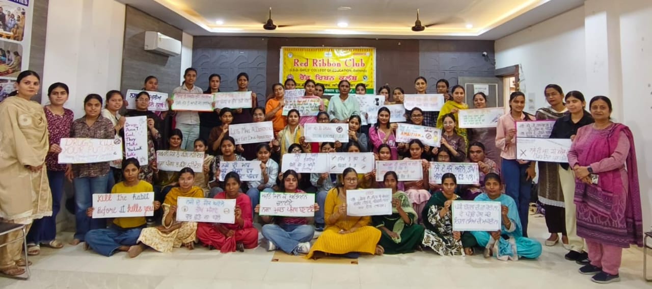 ਵਿਦਿਆਰਥਣਾਂ ਨੇ ਸਲੋਗਨਾਂ ਰਾਹੀਂ ਨਸ਼ਾ ਮੁਕਤ ਸਮਾਜ ਦਾ ਸੰਦੇਸ਼ ਦਿੱਤਾ